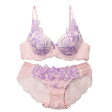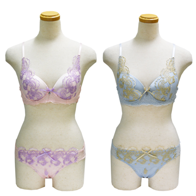ふわっとやわらかな色合いにリボンの刺繍が可愛いブラジャー&ショーツです。