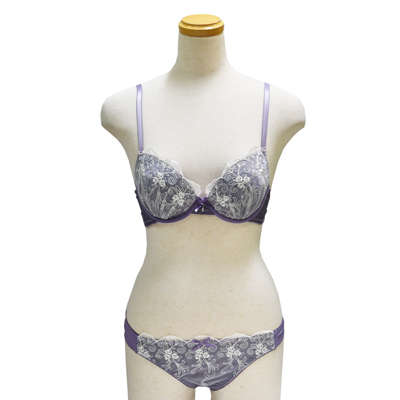 紫と白のコントラストが美しいブラジャー&ショーツです。
