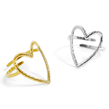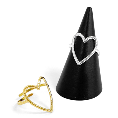 縦長ハートシルエットのステンレス製オープンハートリング。