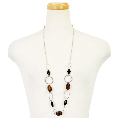 大きめビジューとリングパーツが個性的なロングネックレスです。