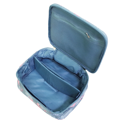 内部にファスナー付きポケットがあり、仕切りはマジックテープで取り外しと組み替えが可能です。